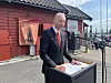 Fylkesordfører Sinder Martinsen-Evje (Ap) på talerstolen på Skjærhalden torg 1. mai