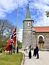 Se bildene fra kransnedleggelsen ved Spjærøy kirke på morgenen 17. mai