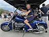 Anne Cedervall har hatt styringen på Havnefestivalen fra dag én. To avlysninger ble nå avløst av den perfekte dagen for en Havnefestival på Skjærhalden. Her poserer Anne på en Boss Hoss, 5,7 l. V8 motorsykkel fra Big Twin AS i Råde, som hadde stand med Indian og Boss Hoss på torget.