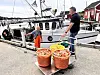 Fisker Einar Helgesen leverer 48 kilo nykokt sjøkreps rett fra båten til Skjærhalden fiskemottak og Thoralf Huth.