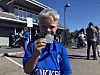 En stolt Niklas Julian Torgersen fra Hvaler IL viser frem deltakermedaljen han fikk etter cupen i helgen.