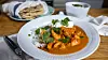 Deilig og smaksfull butter chicken servert med ris og naan-brød