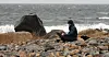Axel Thorenfeldt fra Kirkøy bruker Hvaler-naturen som inspirasjon til akvarellbildene sine. Her sitter Axel i fjæresteinene og maler mens stormkastene pisker i maleblokka