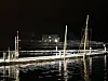 Klokken 17.30 torsdag er det bare mastene som stikker opp over vannet. Nå henger båtene i to fortøyningstau.