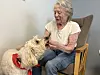- Jeg er døsforelsket i Isak, forteller Eldri, som bor på Dypedalåsen sykehjem. Her belønner hun isak med en godbit. fordi han er så flink.