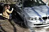 VEDLIKEHOLD: Håkon Sæbø fjerner vinterens skitt fra bilen. Han ser på det både som en trivelig syssel og noe som tar vare på en så dyr investering som en bil er.