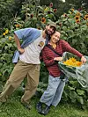 God stemning under natur og håndverksfestivalen på Botnetorget Mat- & Hagebruk. Her er Giacomo Beretta og Lucia Cairo med en kasse quashblomster, som italienerne fyller med poteter, dill, smør, pepper og urter.
