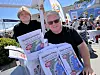 Produsent Dag Solheim og medhjelper Leander Fredh sammen på torgboden på Skjærhalden.