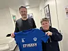 Chriss Kingsrød og Stokken Båt og Motor sponser Hvaler idrettslag med totalt 150.000 kroner over tre år. Her er Kingsrød sammen med leder i Hvaler IL, Cicilie Sandberg.
