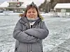 Cicilie Sandberg foran Hvaler idrettslags egen storstue, klubbhuset.