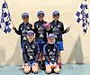 Hvaler IL 2014-lag . Disse jentene stilte opp samme morgen, da et lag fra Sarpsborg meldte avbud. Bak fra venstre: Hennie Tangen Johnsen, Marie Helene Hansen og Malin Sofie Hansen. Foran venstre: Sanne Rognli Kristiansen og Matilde Kaxrud Rolland