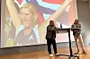 Mye smil og litt alvor. Trine Hattestad strålte i kjent stil foran et fåtall Hvaler-innbyggere som hadde tatt turen til kultursalen for å høre hennes foredrag sammen med Dag Solheim.