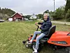 Eline Nordal kvier seg ikke for fysisk arbeid. Her hjemme på Nordal gård har hun mer enn nok å henge fingrene i - som å slå åtte mål med gressplen.