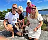 Gromgutten Charlie er trygt tilbake hos eierne Gry og Thomas Brastad (foran). Bak: Karin og Tore Brastad, som opplevde det tøffe halve døgnet da de Charlie rømte.