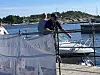 Erik Nordum forsøker å smyge inn en liten båt innerst i gjestehavna. Skjærhalden taper på at det ikke finnes korttidsplasser. Folk blir sure og reiser andre steder for å handle og spise på restaurant, sier Nordum.