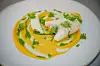 Konfitert fisk med fargerikt følge