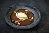 DESSERTDRØM: Isen er plassert på en deilig blanding av sjokoladekrem og karamellsaus.