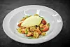 Rabarbra og jordbær er en himmelsk match. Med noen gylne smuler og vaniljeis til blir opplevelsen akkurat passe søt.