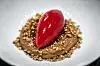 TRE GODE LAG: Med sjokoladekrem, kjekssmuler og kirsebærsorbé får du ulike teksturer og temperaturer i desserten.