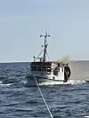 Brann i fiskebåt i Skagerak - redningssksøyta fra Skjærhalden bistod