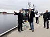 Partileder i Senterpartiet Trygve Slagsvold Vedum var tirsdag på besøk på Utgårdskilen for orientering om tingenes tilstand er etter fiskertiltakene tro i kraft. Her sammen med Geir Magne Skjelbred, Steinar Andreassen og Hans Herman Utgård.