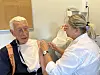 Her får Nils Haarbye sin fjerde vaksinedose av sykepleier Anne Pøhner.
