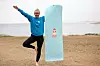 Katarina Magnus er barneyoga-instruktør. Her poserer hun på Storesand.