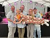 Et samstemt dommerpanel utpekte Hermine Skovdahl til vinner av TalentFestiHvaler 2023. 14-åringen fikk rosende ord med seg på veien hjem til Moss. Fra venstre: Thomas Holmen Olsen, Øystein Elgheim, Maria Mohn og Kai Thomas Larsen, som holder Hermine Skovdahl i sine armer.