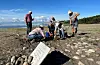 Møysommelig legger de ned stein for stein. Ildsjeler i Hvaler Kulturvernforening restaurerer nå den 220 år gamle tangveien på Storesand sammen med historiker Olav Aaraas.