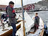 Johannes Nystrøm rigger kutteren sammen med bestefar Arne Nystrøm.