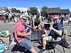Radio 5 Hvaler på torget: Raymond Hobekk Johansen (til venstre) og Sam Natanael Møllerop-Allum(til høyre) hadde to timer med live radio på torget i Skjærhalden