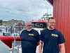 Svein Aage Olsen, skipper på redningsskøyta, og Erik Bustgaard, maskinist på redningsskøyta. – Vi får ta med Erik på bildet, han er jo den unge og fremadstormende, sier skipper Olsen.
