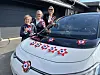 Lisbeth Kagnussen, Gro Bengtson og Helle Solstad i Hvaler Sanitetsforening er full gang med salget av maiblomster og maikranser. Inntektene går til barn og unge.