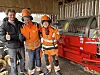 Lucas og Svein Åge mater den nye vedmaskinen til Viuno - langt mer effektiv