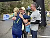 Linn Charlotte Lundberg fra Sarpsborg var blant de siste løperne over mål på 10-kilometeren i Hvalermila. Ikke desto mindre var den fantastiske idrettsgleden - både for Linn Charlotte og hennes venner.