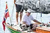 Kong Harald om bord i sin seilbåt Sira under VM for 8-metere i Langenargen sør i Tyskland i 2018.